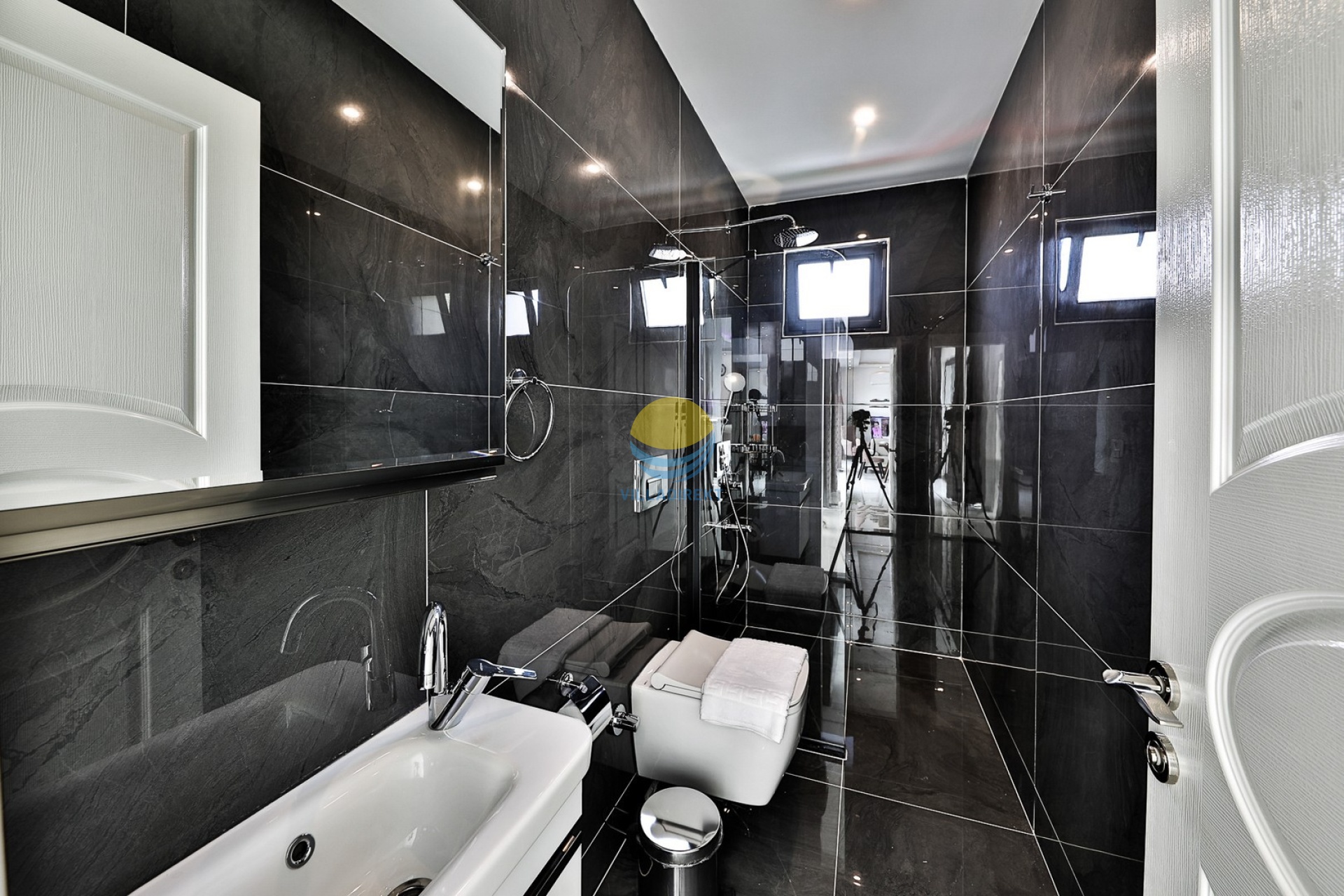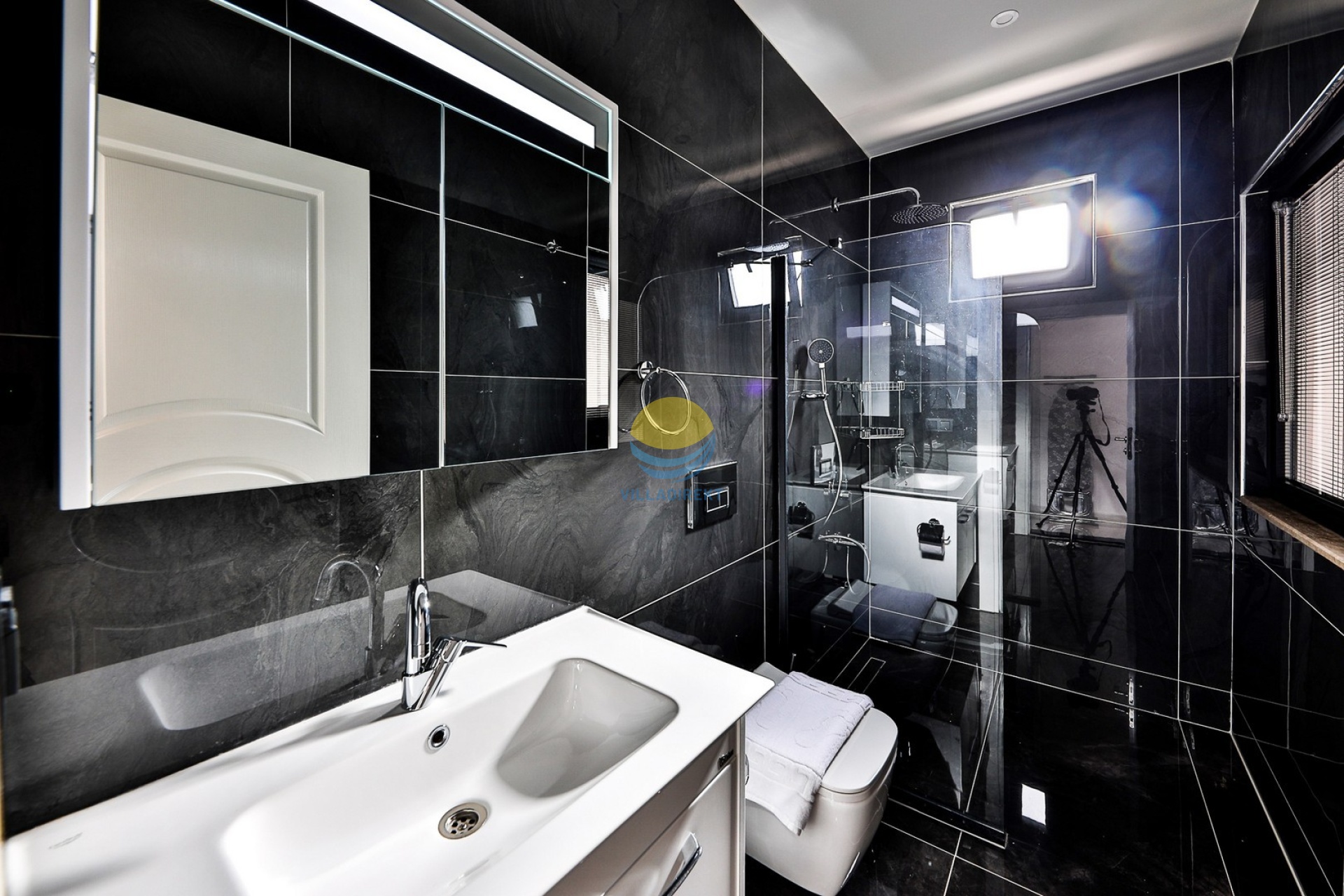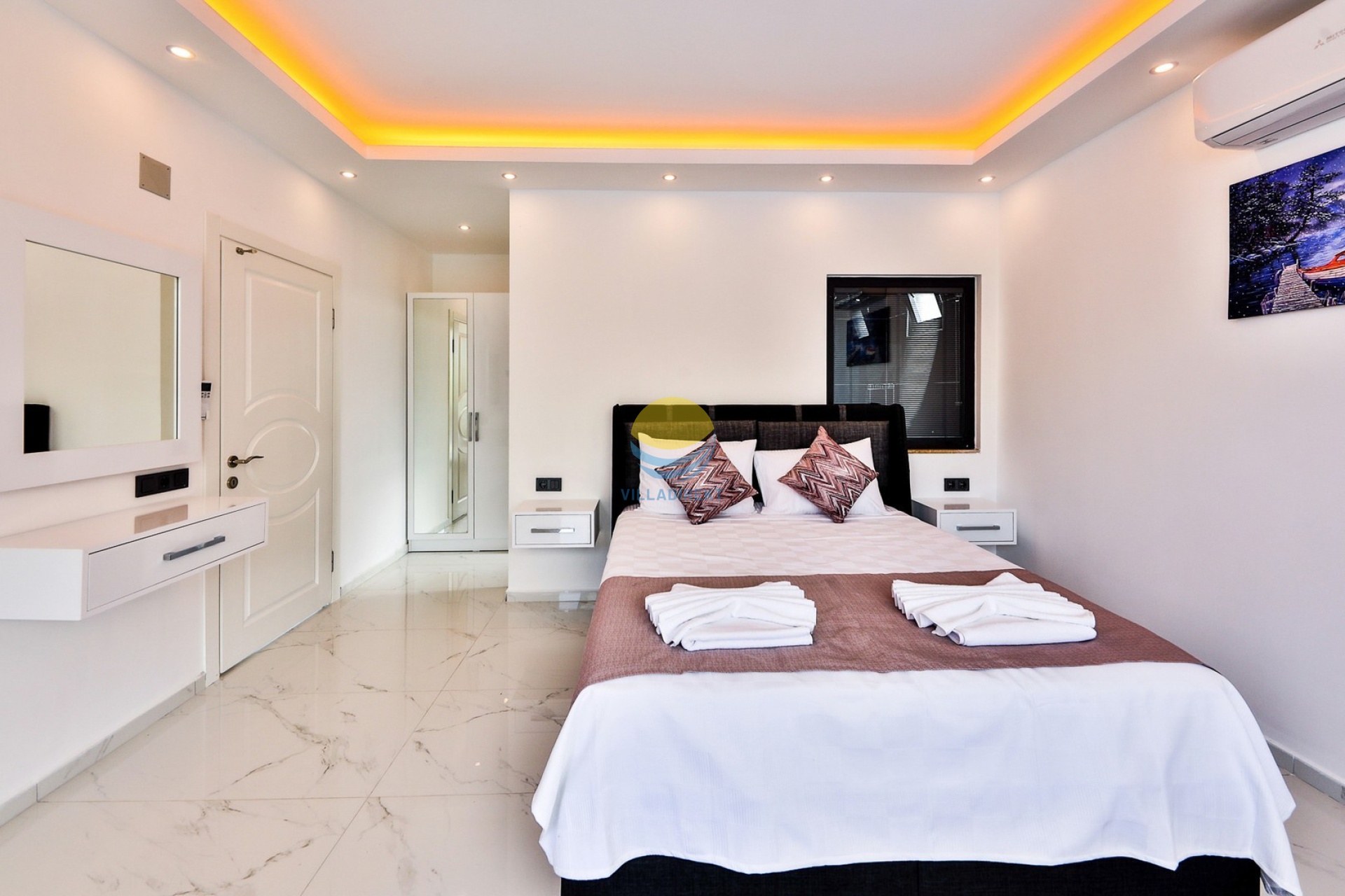 1.Schlafzimmer: 1 Doppelbett, Klimaanlage, Kleiderschrank, Whirlpool, Bad und WC.