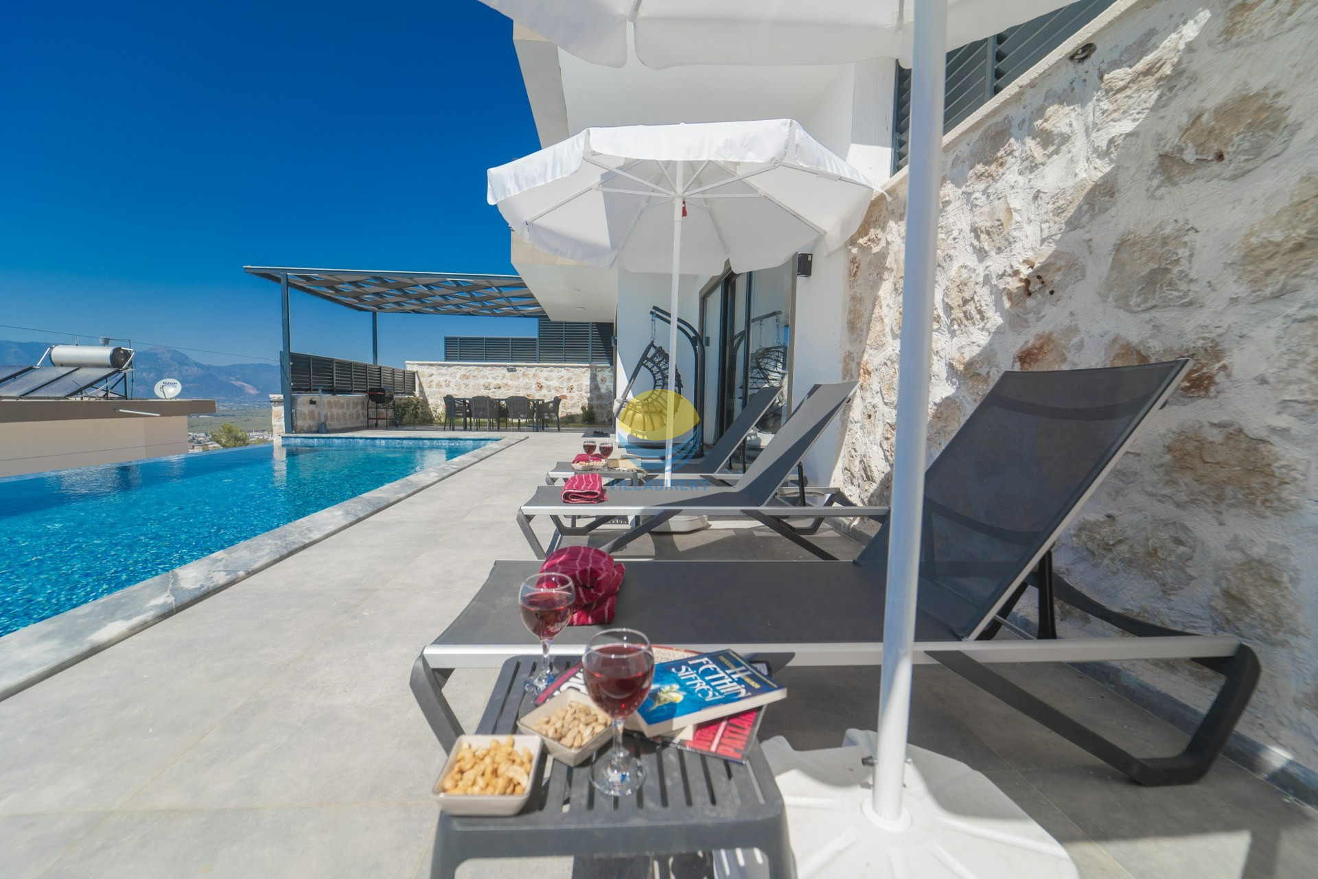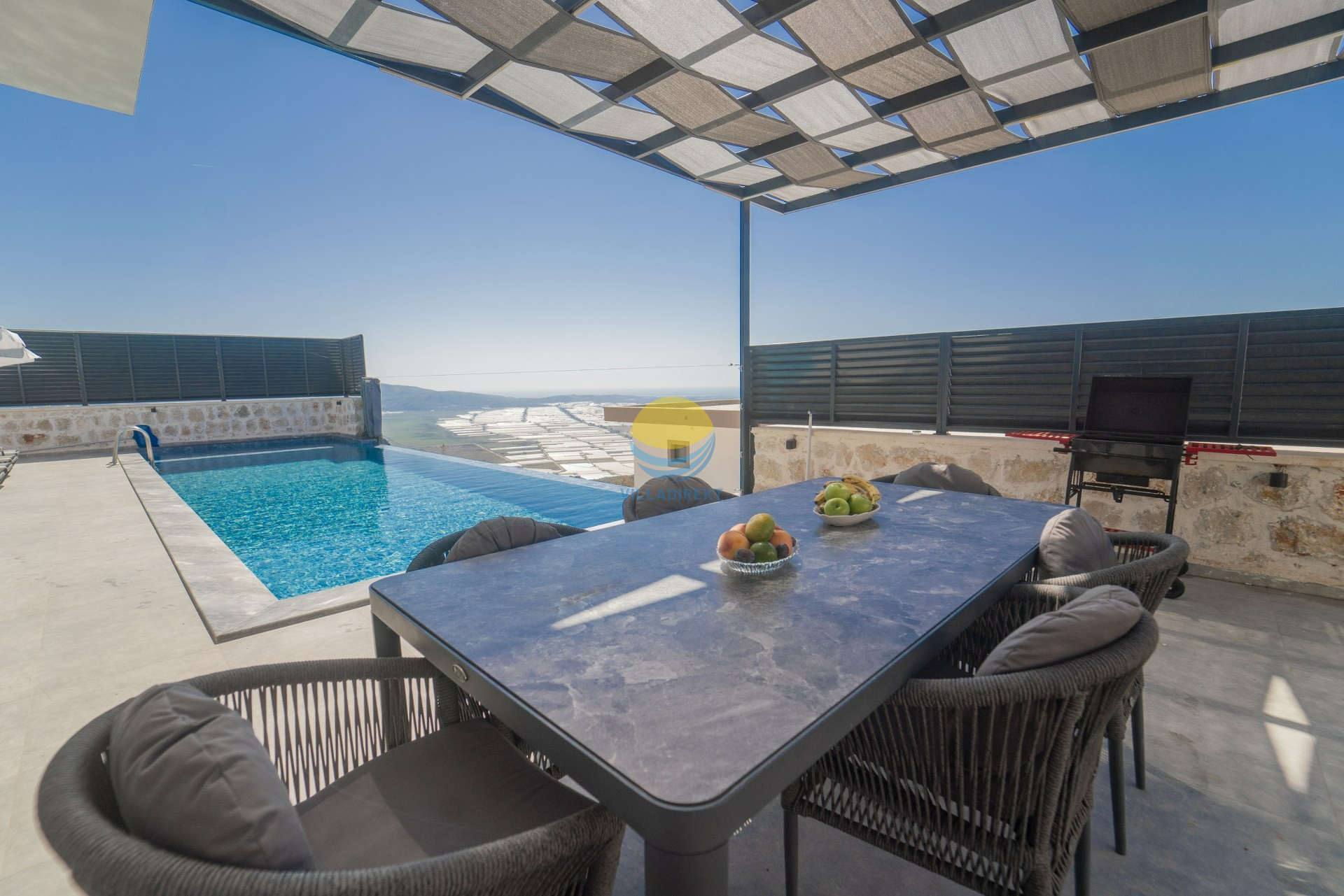 Unsere Villa ist ein luxuriöses Urlaubsdomizil, das durch seine herrliche Aussicht besticht. Es bietet Unterkunft für bis zu 4 Personen mit 2 Suite Schlafzimmer. Das Hauptschlafzimmer hat ein Doppelbett und einen Whirlpool; das andere Schlafzimmer hat 2 Einzelbetten. Beide Schlafzimmer verfügen über ein eigenes Bad, WC und Klimaanlage.